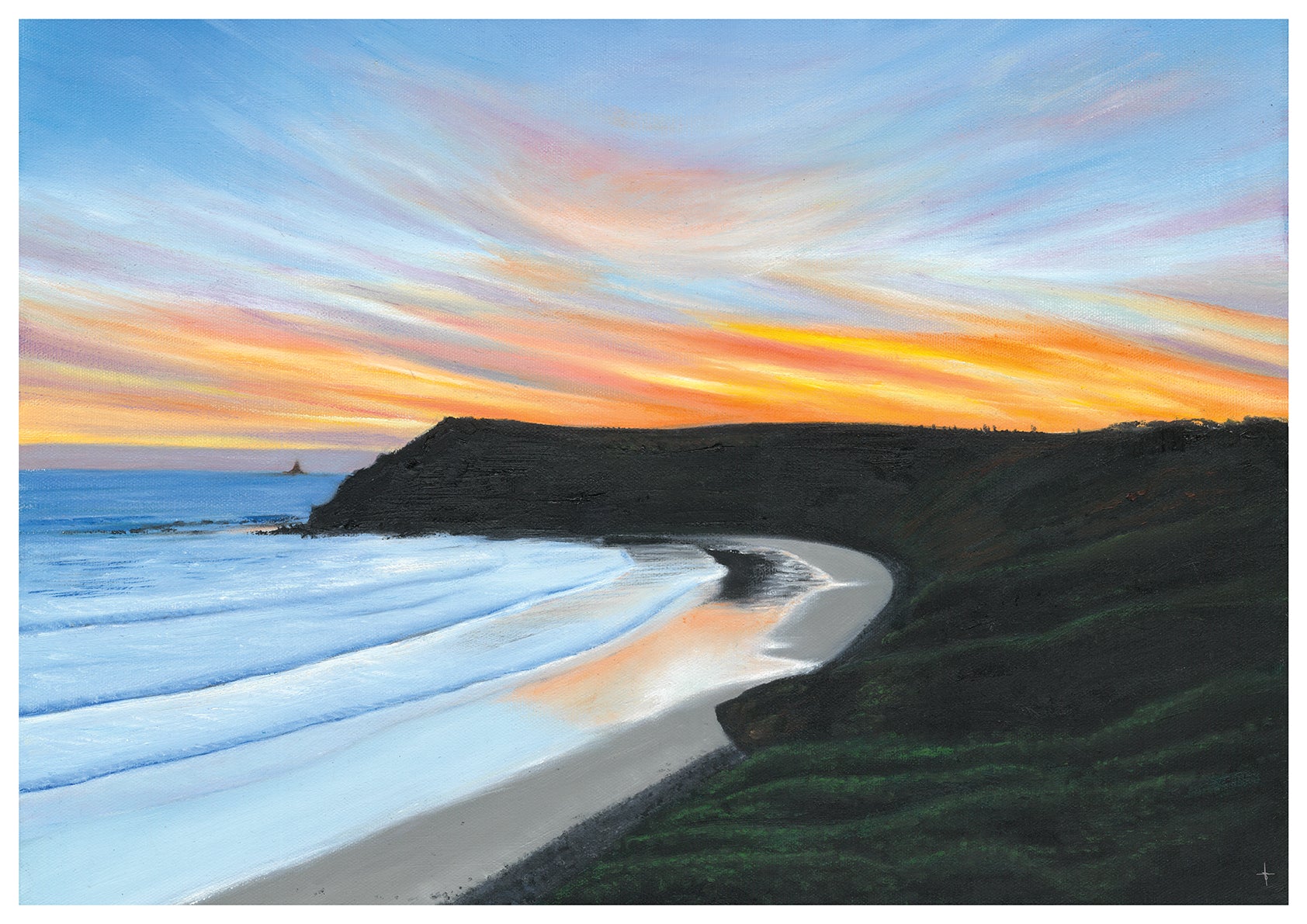 Fine Art Print of Original Oil Painting. This was painted of Phillip Islands YCW beach. Print comes unframed with white border, signed and dated with cardboard backing in a plastic sleeve for protection.