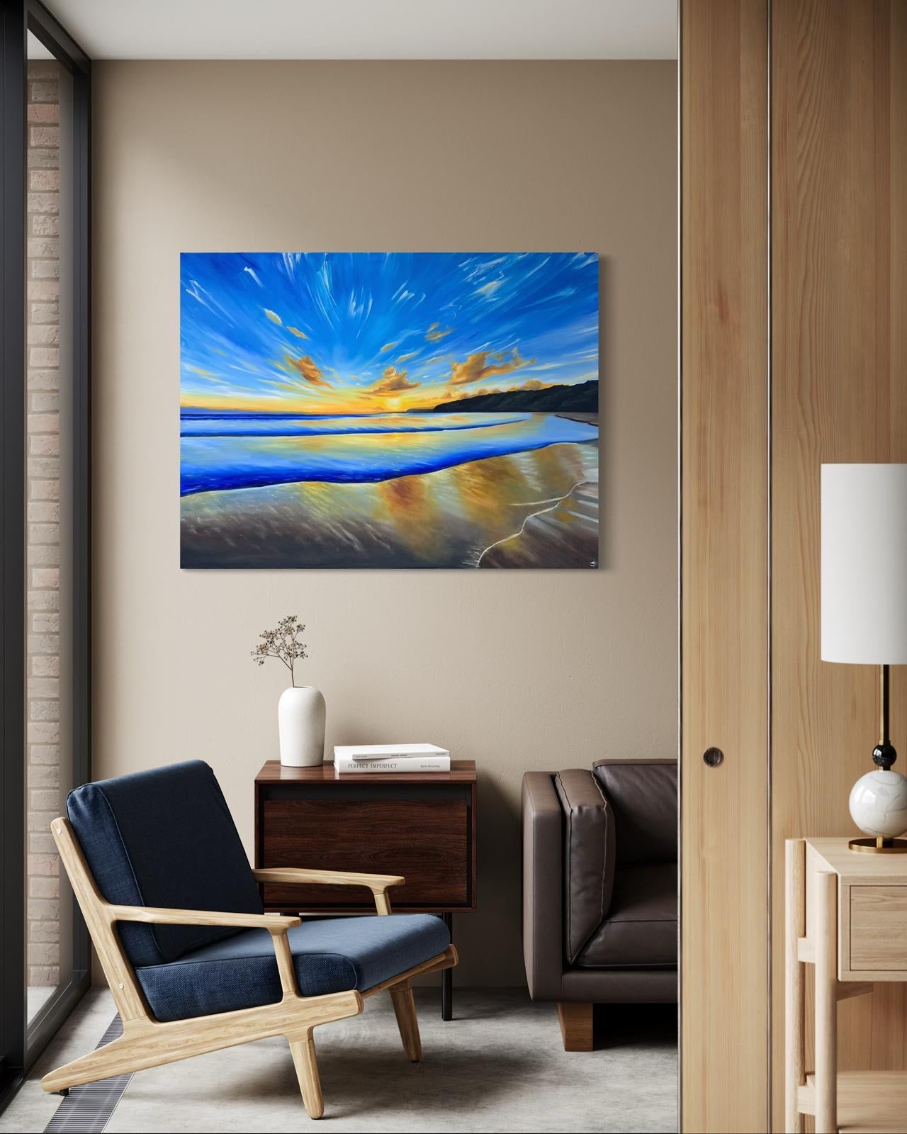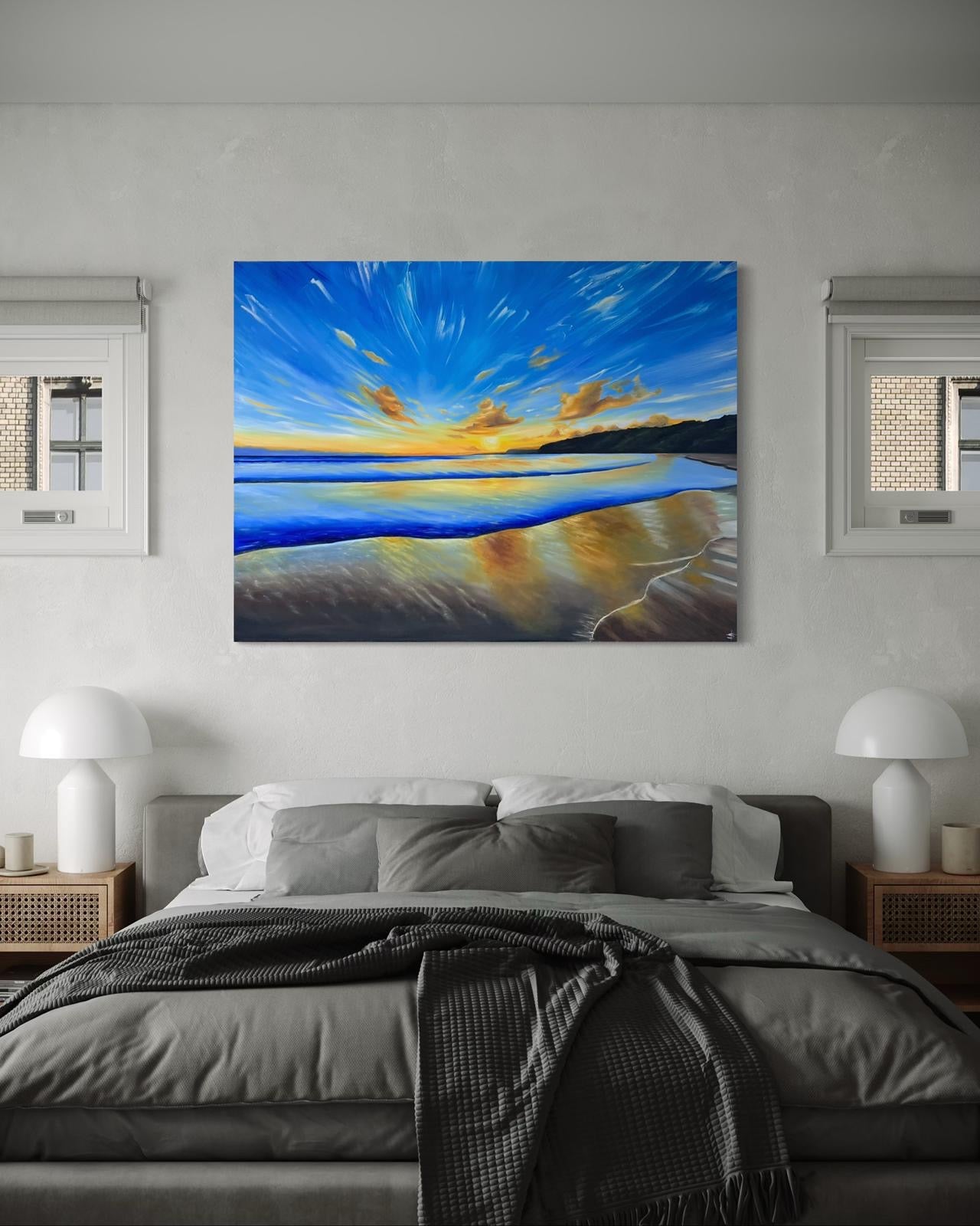 Original Oil Painting is 95cm x 122.1cm. Painting comes unframed however if you would like it framed in timber then check the framed option and additional time will need to be allowed for framing before being shipped. Painting will come packaged in bubble wrap and packaged in a cardboard box for protection.